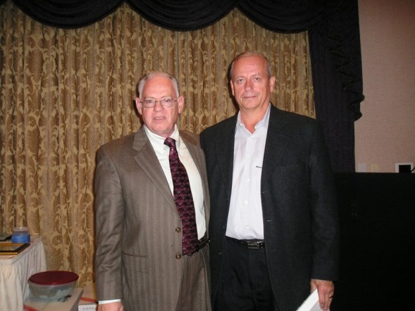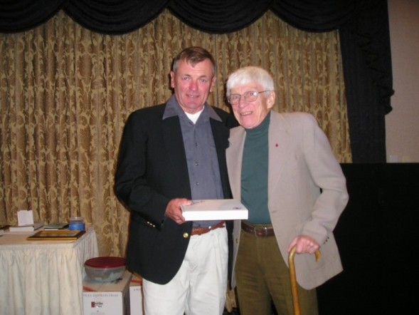 congratulate Tom Slane (right) on his retirement after 29 years of