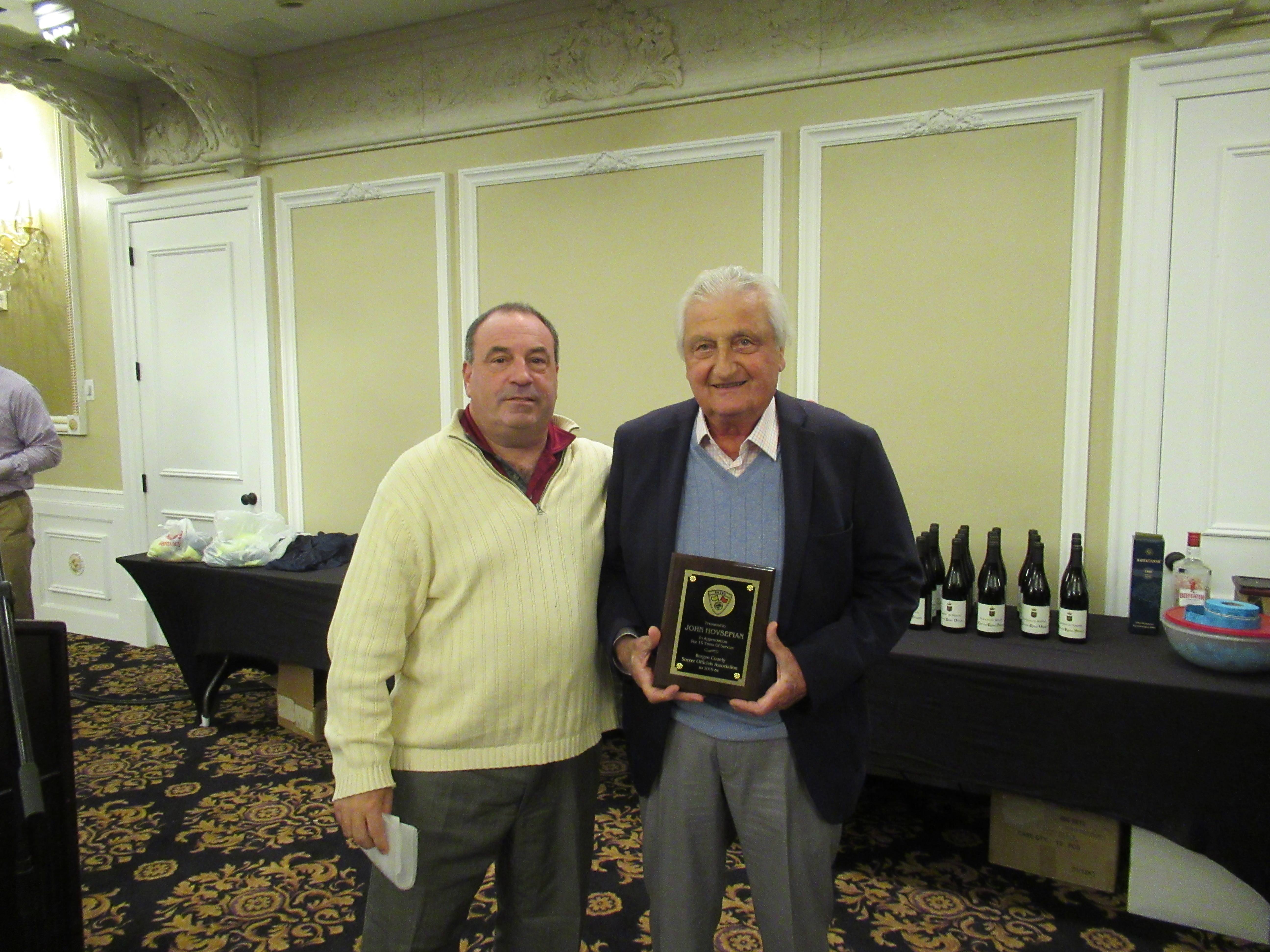 John Hovsepian (right) receiving his 15 year